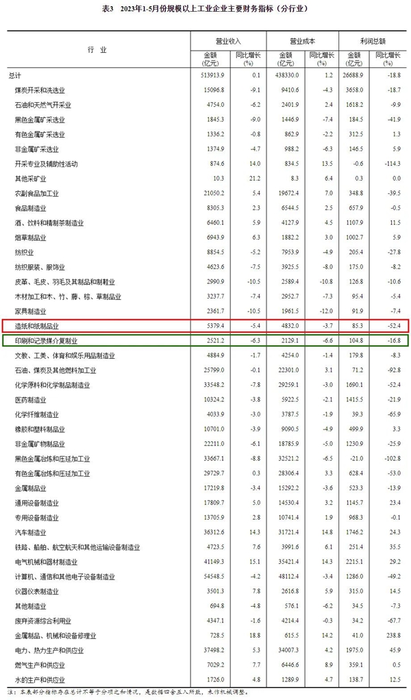 1—5月份,規模(mó)以上工業企業(ye)實現營業收入(ru)51.39萬億元,同🈲比增(zeng)長0.1%;發生營業成(chéng)本43.83萬億元,增長(zhang)1.2%;營業收入利潤(rùn)率爲5.19%,同比下降(jiàng)1.21個百分點。其中(zhōng),造紙和紙制品(pin)業實🧑🏾🤝🧑🏼現營業收(shou)入5379.4億元,同比下(xià)降5.4%;印刷和記錄(lù)媒介複制業實(shí)現營業收入2521.2億(yì)⛷️元,同比下降6.3%。